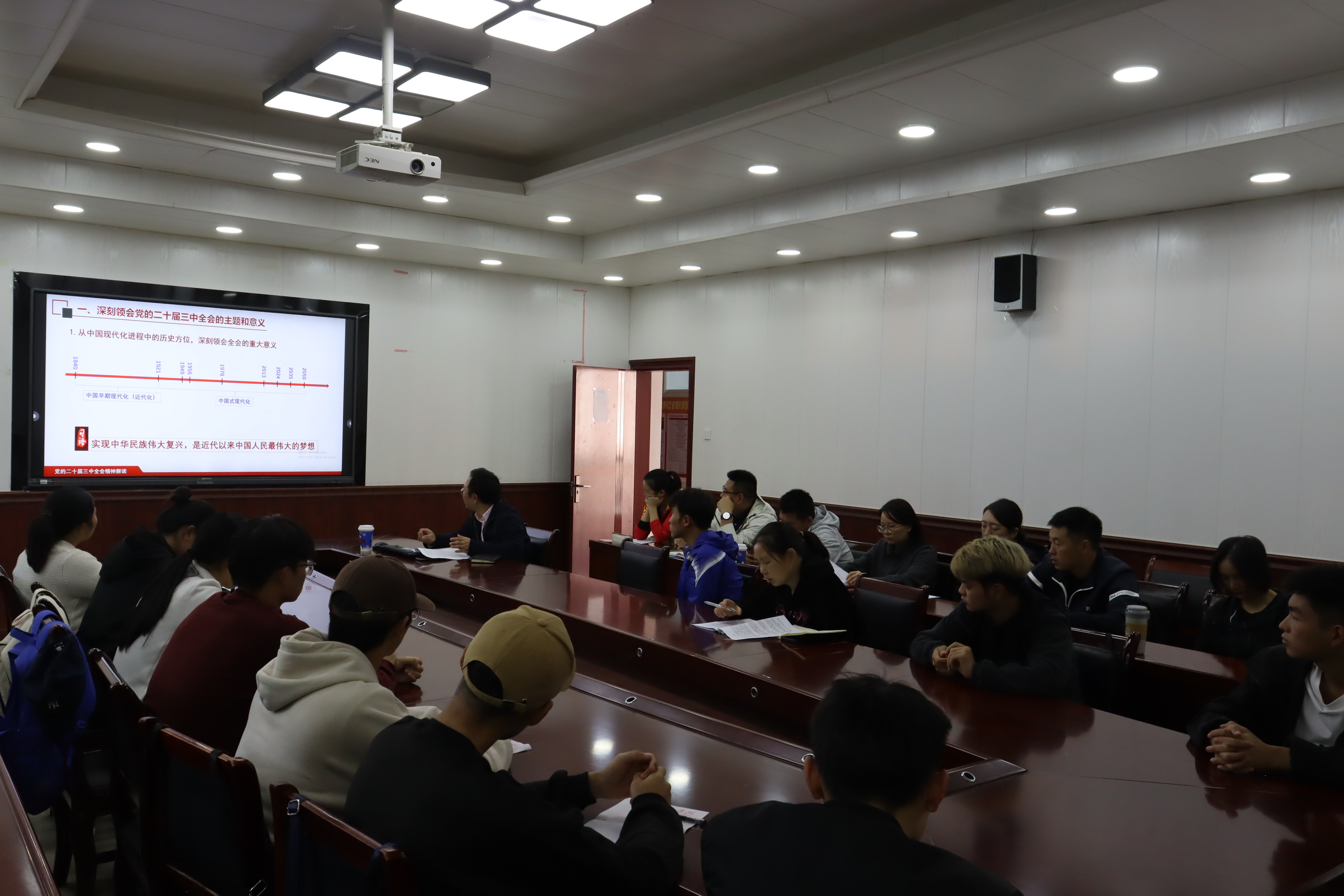 汤士波对全会精神进行了理论讲授,剖析了全面深化改革的总目标,即继续完善和发展中国特色社会主义制度,推进国家治理体系和治理能力现代化。他讲到,党的二十届三中全会通过的《中共中央关于进一步全面深化改革推进中国式现代化的决定》是新时代新征程上推动全面深化改革向广度和深度进军的总动员、总部署,为中国式现代化提供了强大动力和制度保障。汤士波还联系学院发展实际,阐述了高校在全面深化改革中的责任与使命。他强调,best365英国体育在线作为培养体育人才的重要阵地,要紧紧围绕推进中国式现代化进一步全面深化改革。一方面,要加强学科建设,优化课程体系,提高人才培养质量;另一方面,要积极拓展院企合作、产学研结合等路径,推动科研成果的转化和应用。同时,还要加强党的建设,发挥基层党组织的领导作用,为全面深化改革提供坚强的政治保障。best365英国体育在线两位学生党支部书记也结合贵州省当前发展现状以及校、院发展实际进行了宣讲。